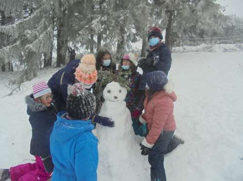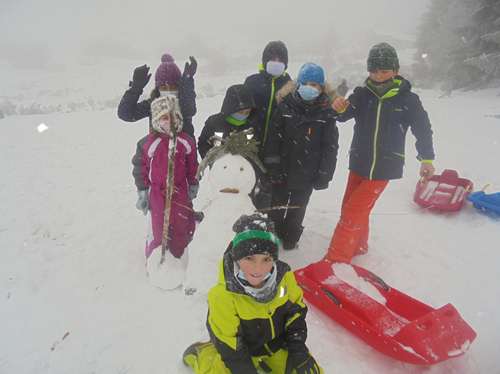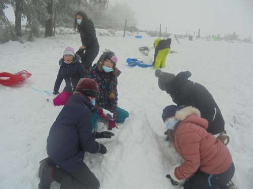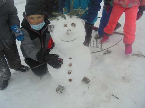 Profitant de la neige tombée en quantité, les classes de CM2 et de Ce2/CM1 ont profité des joies de la neige: au programme: concours de bonhommes de neige, constructions d’igloos et luge bien entendu!!