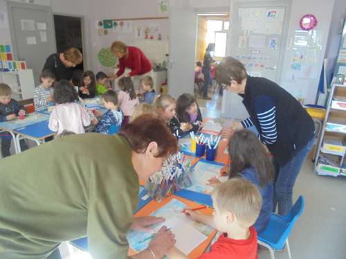 Tous les élèves de maternelle (PS1 à GS) se sont retrouvés autour de divers ateliers sur le thème de Pâques et du printemps: œufs de pâques à peindre, petits escargots, mains-fleurs ou encore arbres de printemps en peinture ont rythmé cette matinée! merci aux parents, mamies…qui nous ont aidés à la bonne marche de ces ateliers!