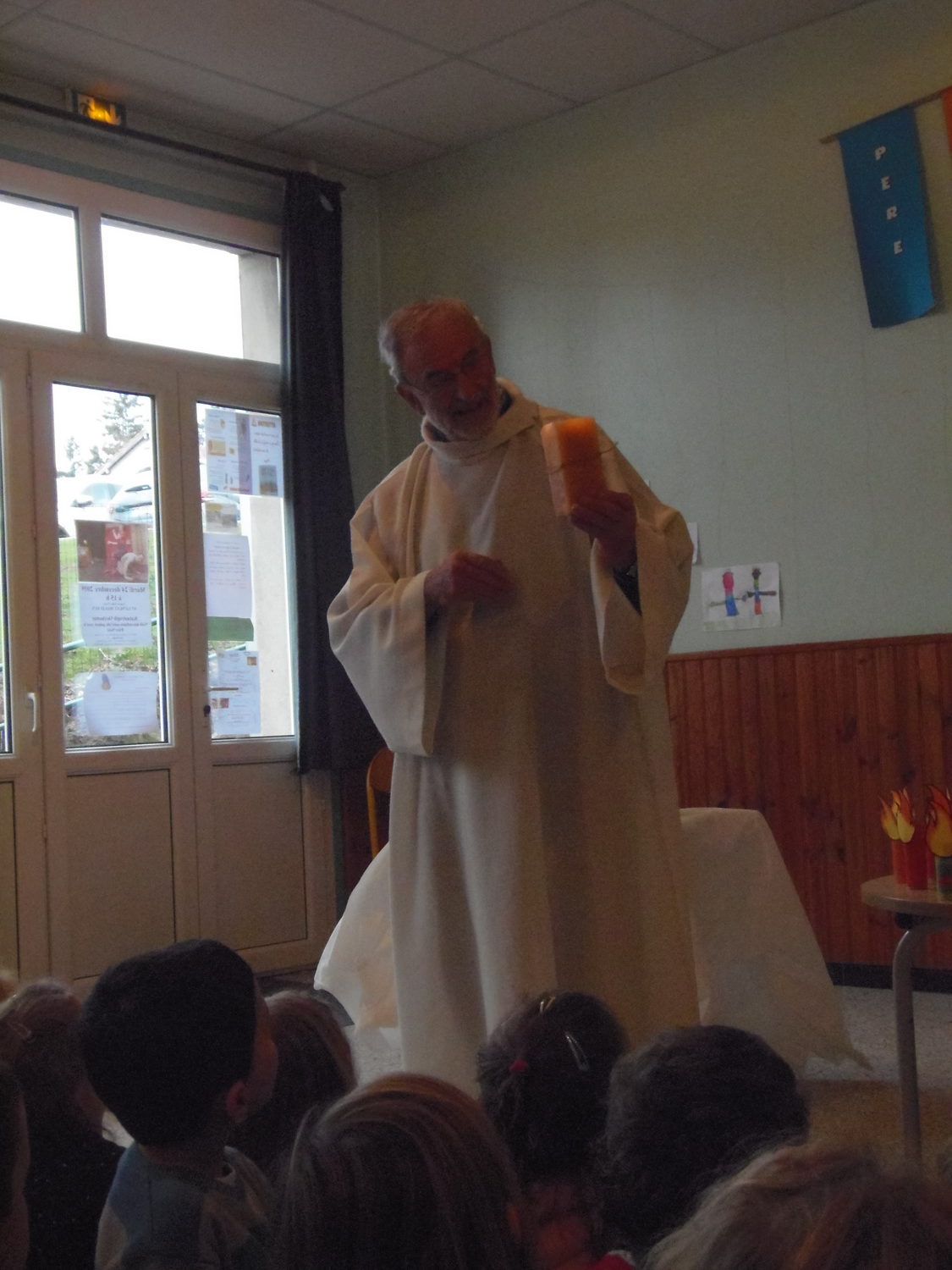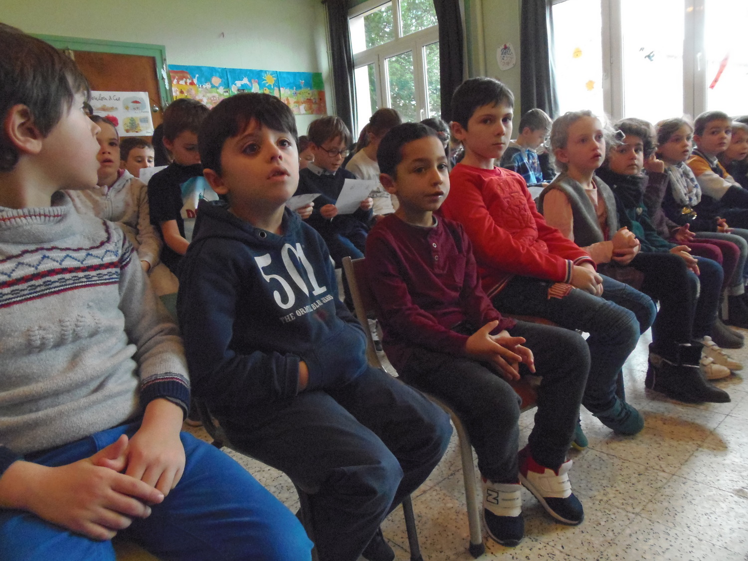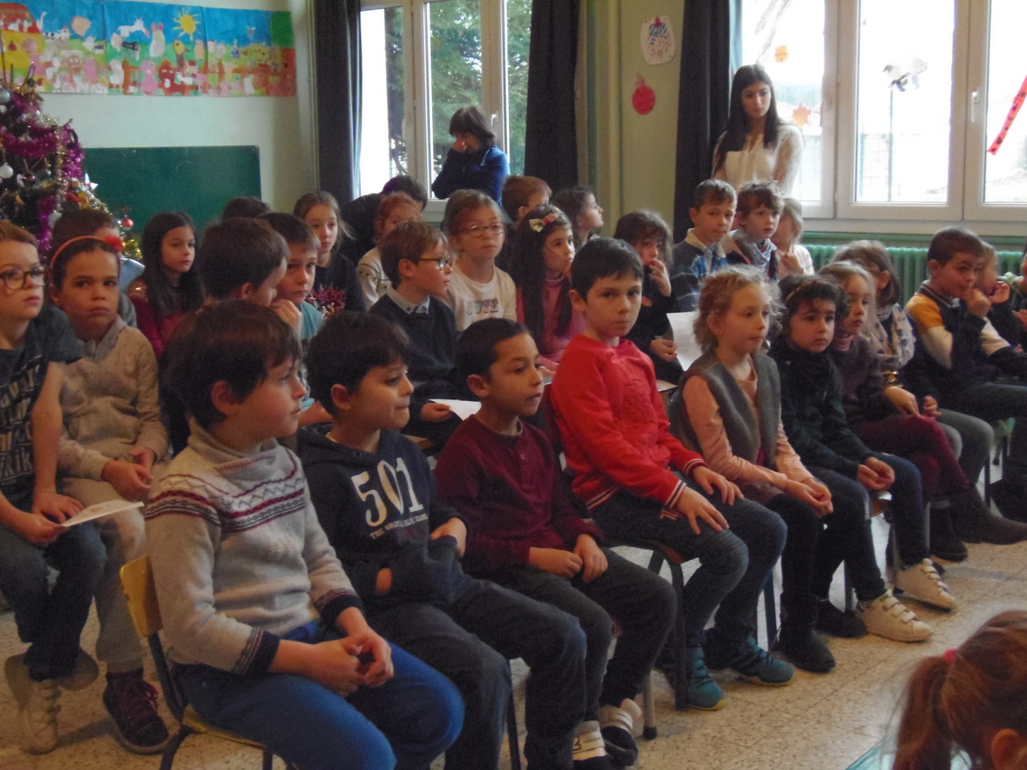 Nous avons assisté à la célébration de Noël dans la salle de garderie avec les deux classes maternelles et les CE1: