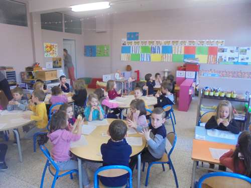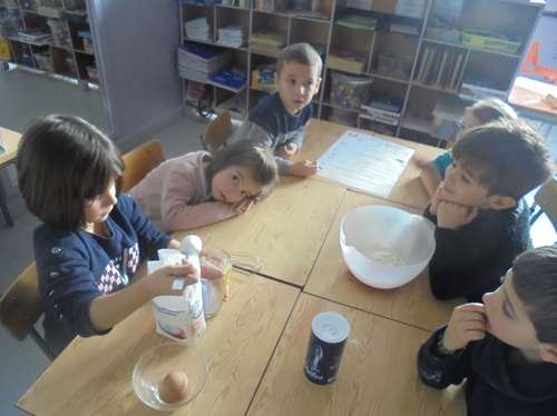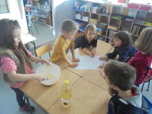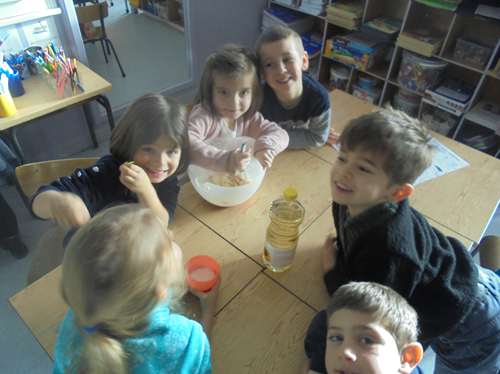 Les élèves de MS/GS ont fêté comme ils se doit la chandeleur! Après avoir préparer la pâte à crêpes le matin, place à la dégustation l’après midi avec les PS/MS! Quel régal!!!