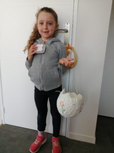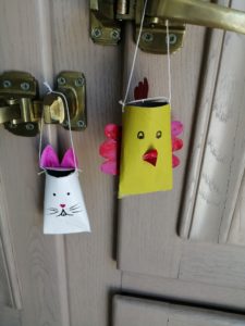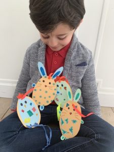 Pour le week-end de Pâques, la maîtresse nous a lancé un défi: faire un bricolage de Pâques à l’aide d’un modèle sur un site et surtout de notre imagination (toutes les idées sont bonnes!)