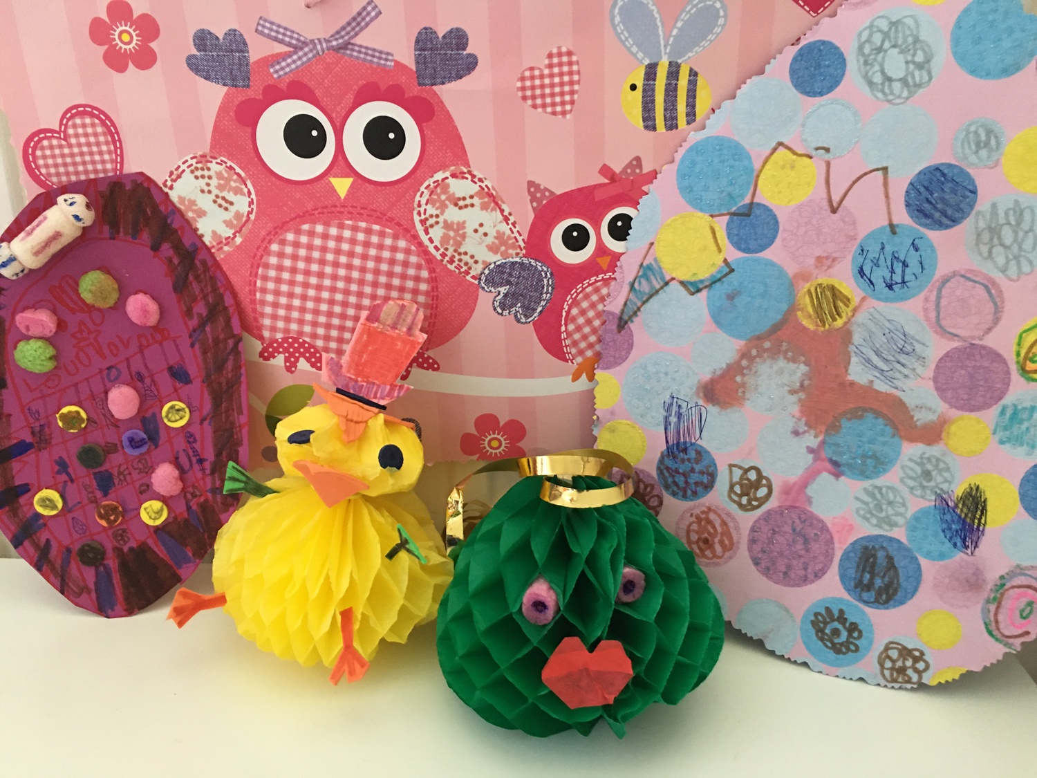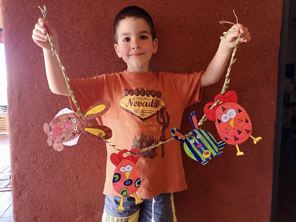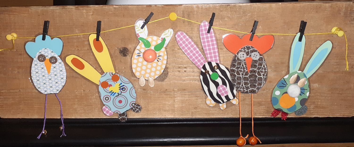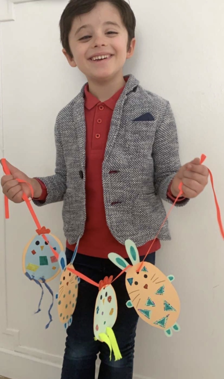 Pour le week-end de Pâques, la maîtresse nous a lancé un défi: faire un bricolage de Pâques à l’aide d’un modèle sur un site et surtout de notre imagination (toutes les idées sont bonnes!)