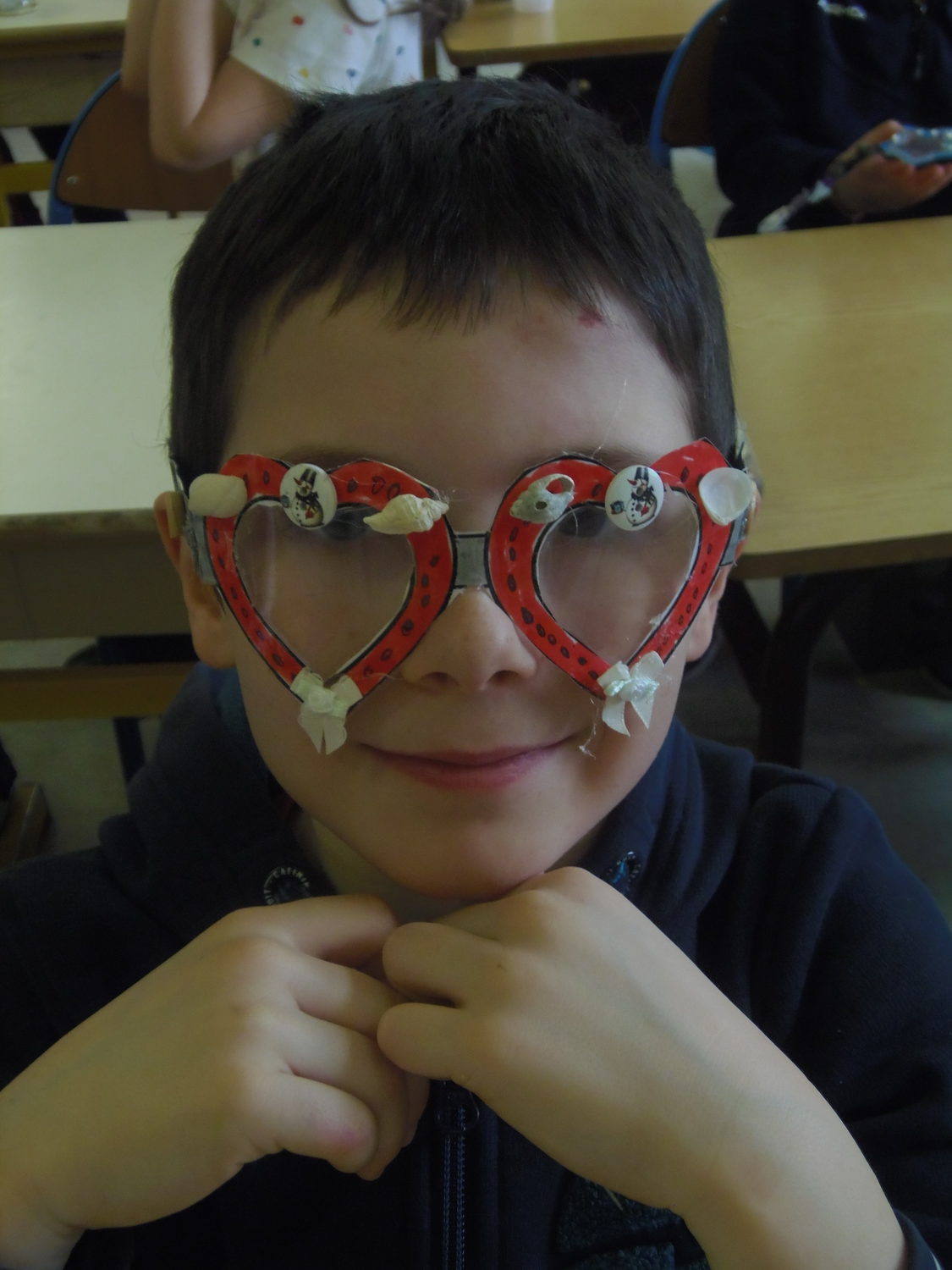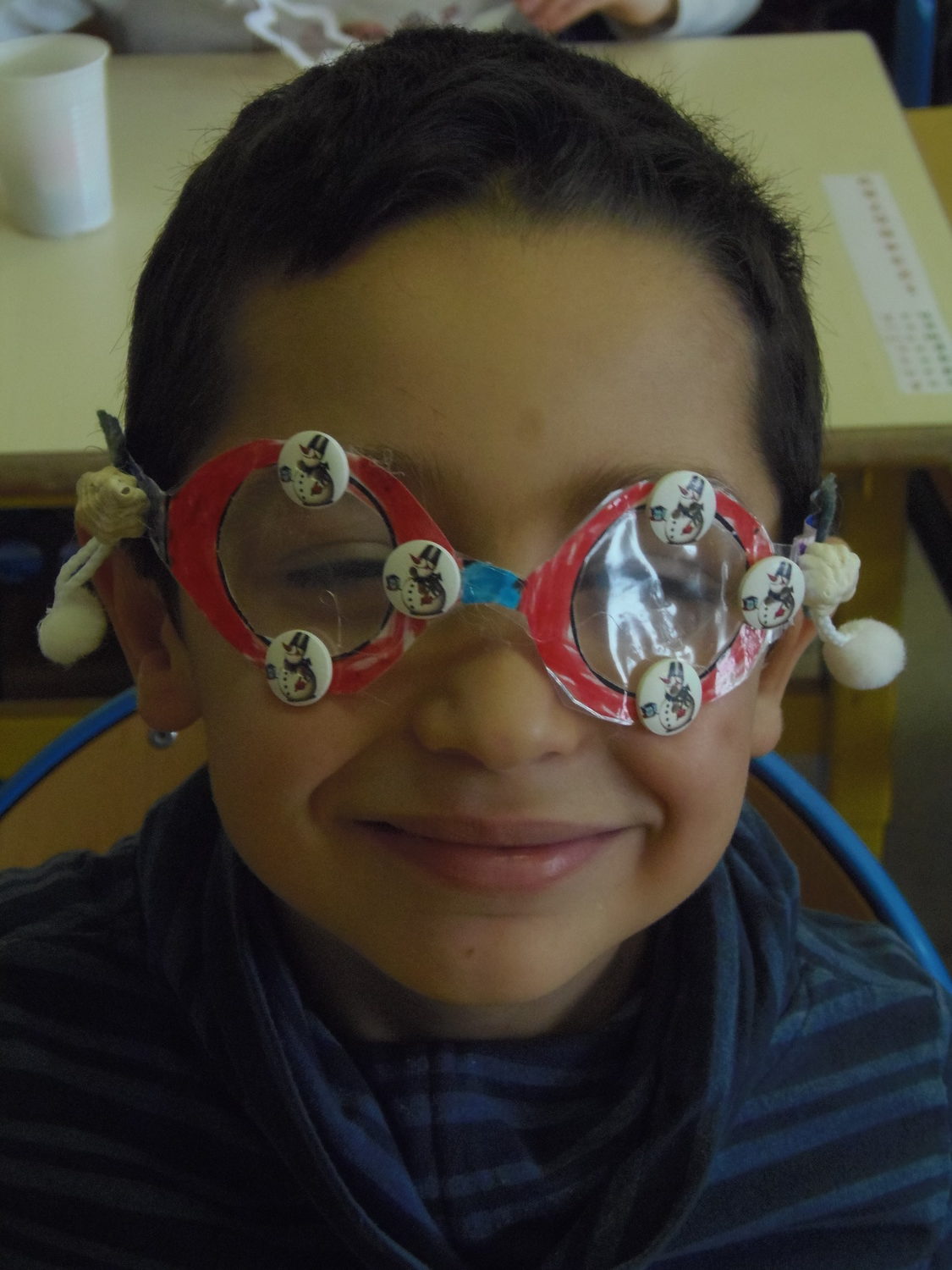 Nous avons fabriqué des lunettes. Reconnais-tu chacun de nous?