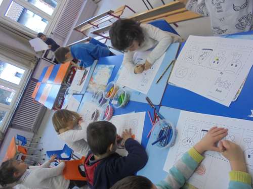 La journée débute avec un “english breakfast”; puis suivent divers ateliers: réalisation commune du drapeau anglais, réalisation d’un “pets book”, coloriages, comptines et lecture d’albums “in english please!!!”