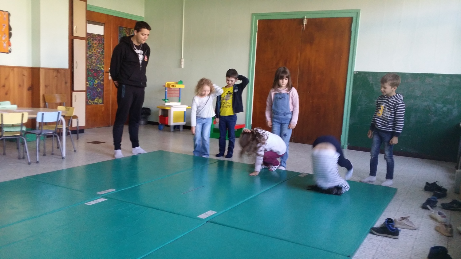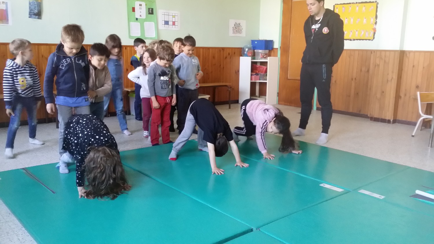 Mardi 30 avril, nous avons participé à notre première séance d’initiation à l’art du cirque avec Damien. Nous avons appris à jongler avec un foulard, une balle… Puis le cours suivant, nous avons fait des acrobaties comme des roulades par exemple.