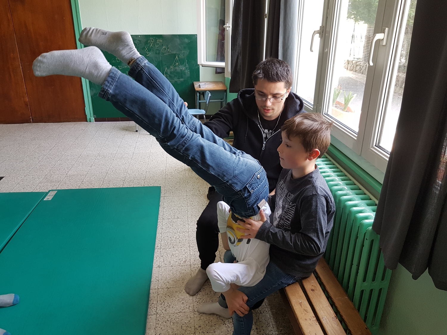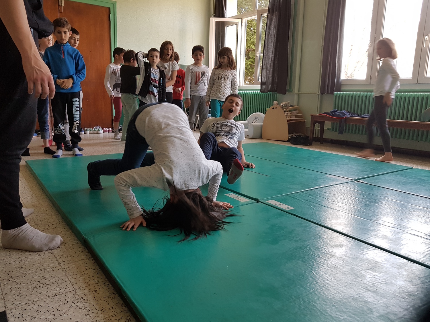 Jusqu’au mois de juin et ce depuis mai, les élèves des différentes classes de Saint Joseph ont le plaisir d’être initiés aux différentes disciplines liées au cirque : jongle, gym…Le tout est bien entendu encadré par un animateur professionnel d’une compagnie circassienne. Voici les premières gammes en photos :