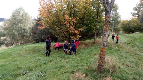 Vendredi après midi les élèves de maternelle sont partis pour une petite promenade vers le sentier botanique de St Genest Malifaux, afin de récolter des petits trésors d’Automne: diverses feuilles, pommes de pin…