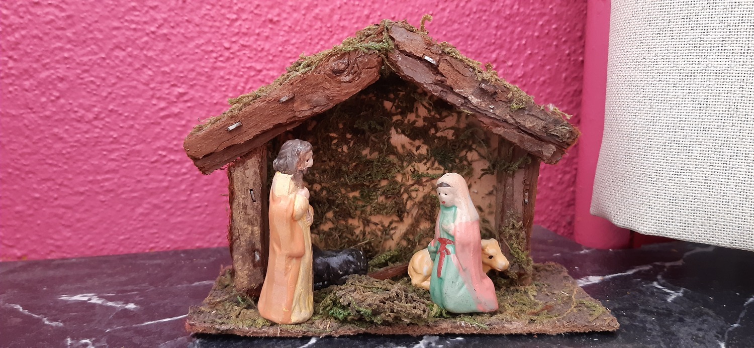 – Une crèche est posée sur l’étagère de la classe :