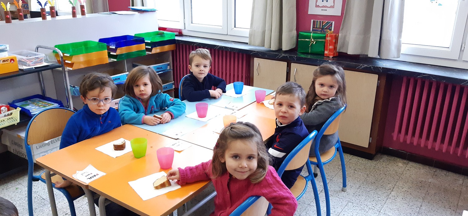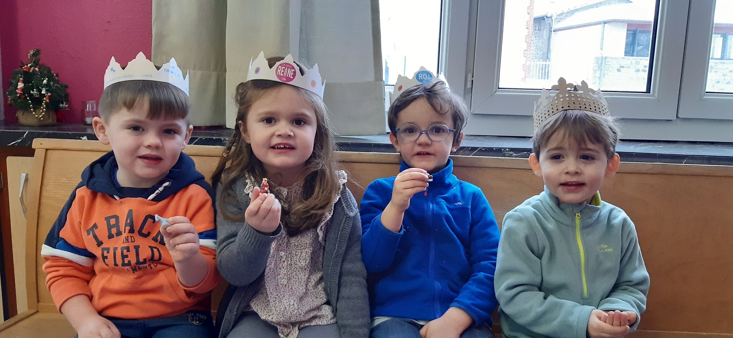 Les élèves de PS1-PS2-MS ont fêté l’Épiphanie en partageant la brioche des Rois. Nous avons eu 1 reine et 3 rois !