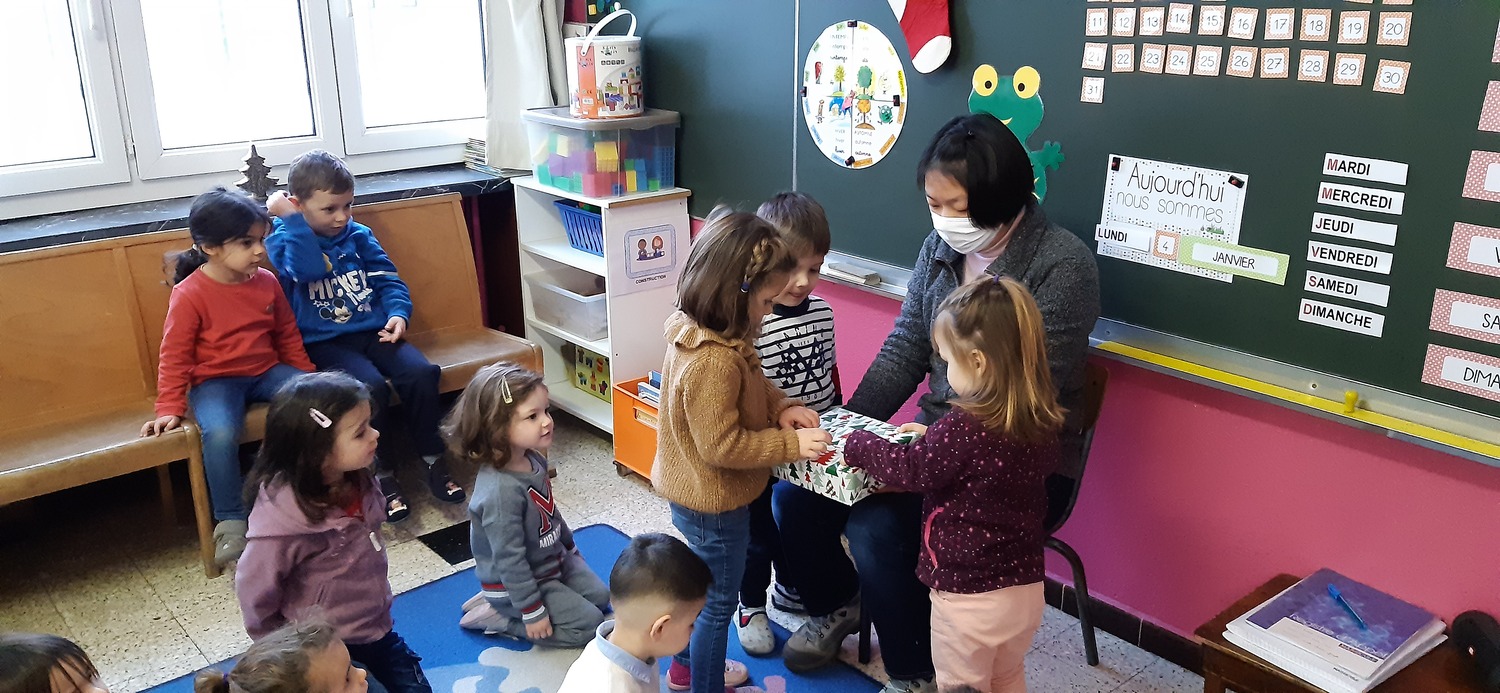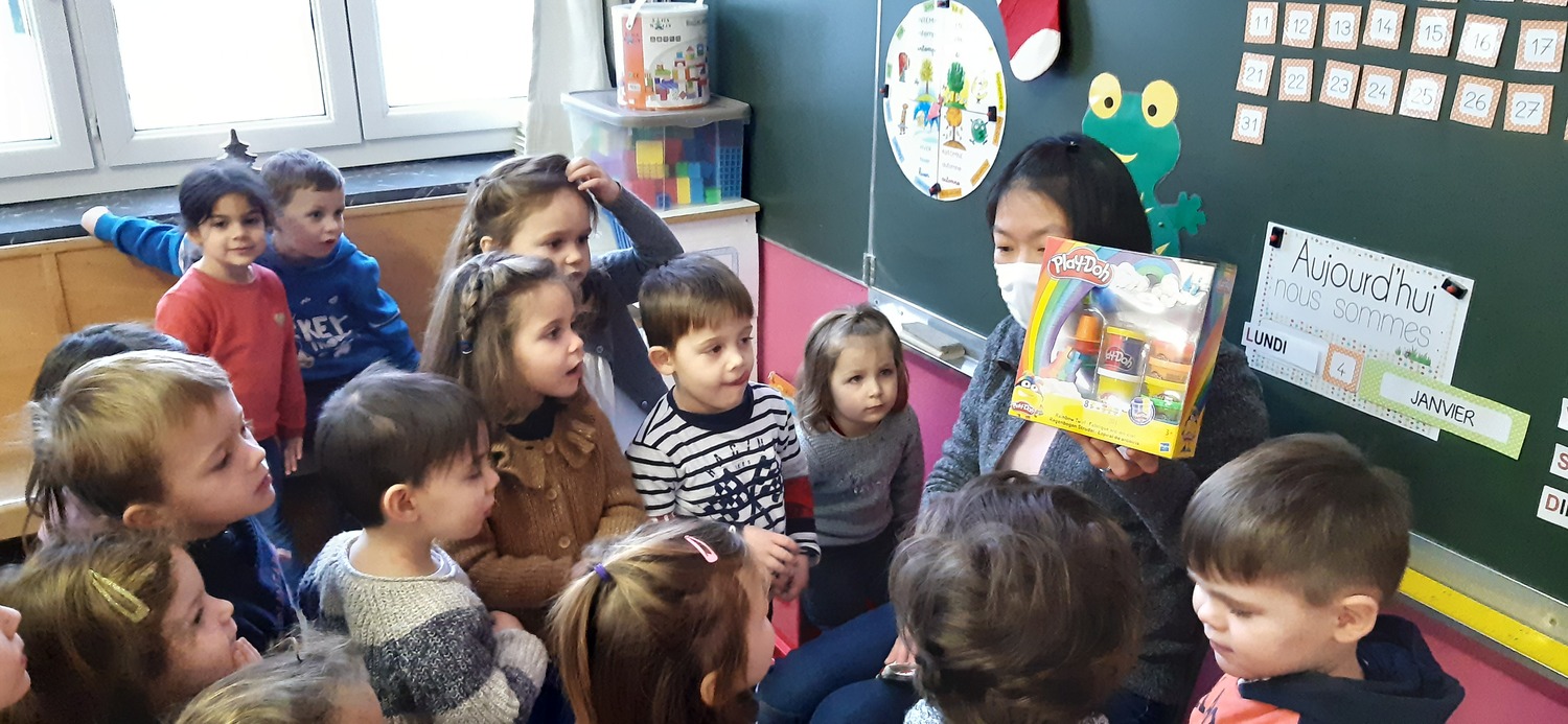 Les élèves de PS1-PS2-MS ont eu l’heureuse surprise de voir que le Père Noël avait déposé un cadeau pour la classe au pied du sapin ! Il a apporté de la pâte à modeler avec des accessoires pour jouer avec. Les enfants étaient très contents !