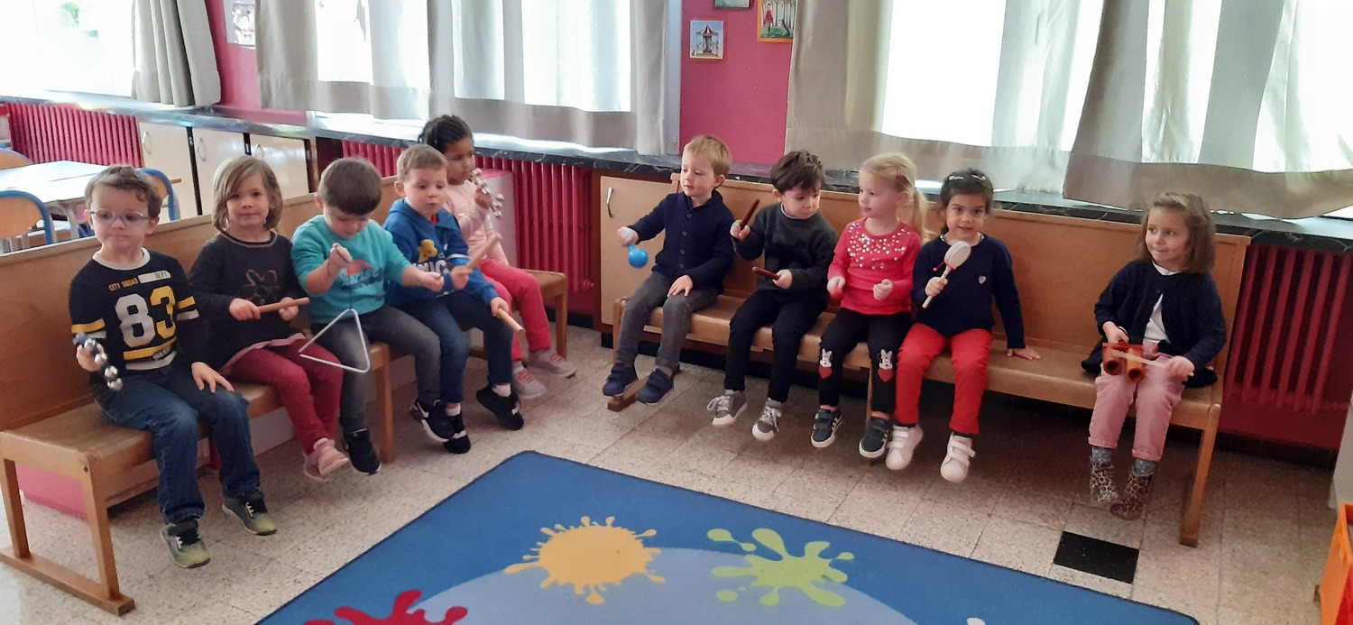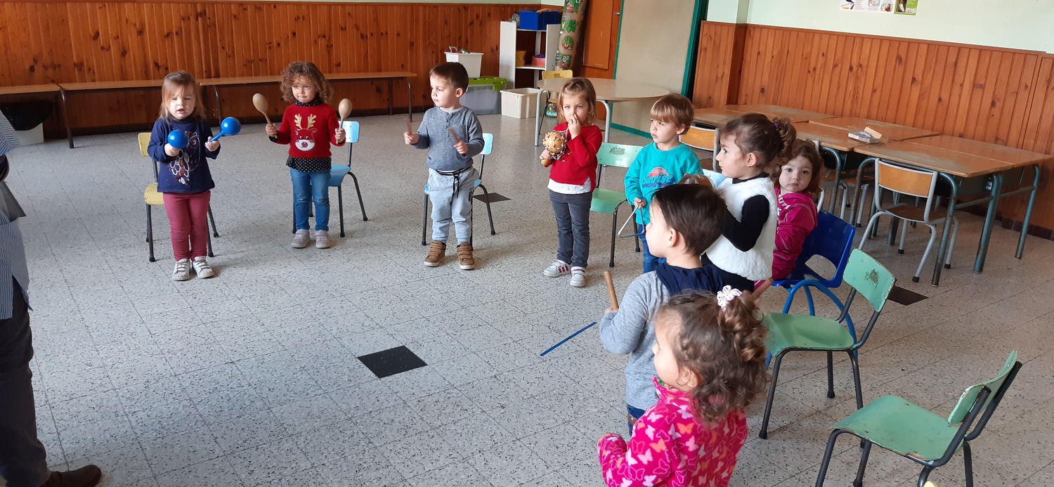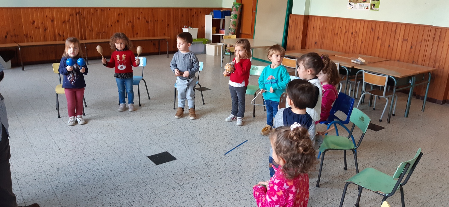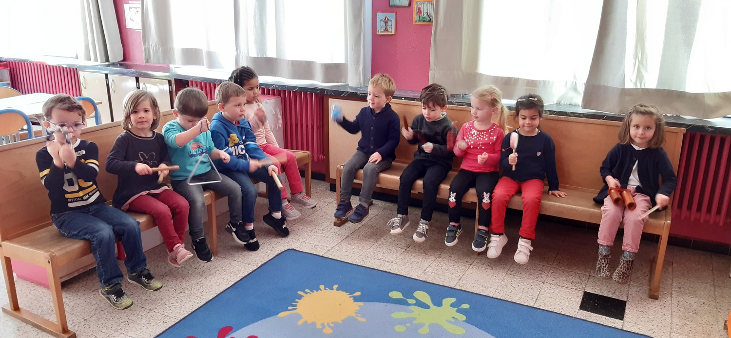 Les élèves ont découvert la malle des instruments de musique à percussion de l’école (claves, triangle, maracas, tambourin…). Ils se sont tout d’abord familiarisé avec ces instruments en les manipulant et en essayant de voir comment on pouvait faire de la musique avec. Puis, nous avons travaillé quelques rythmes.