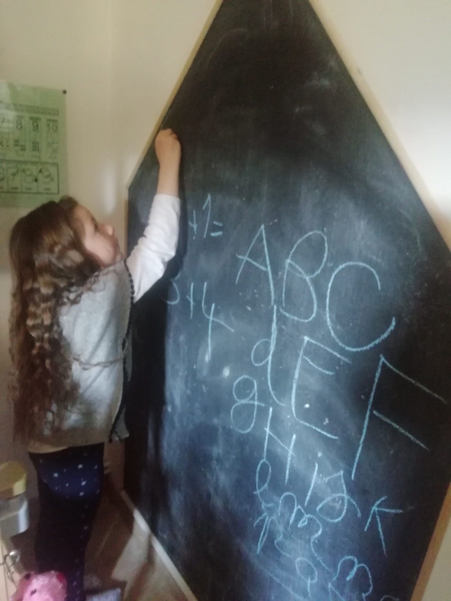Tessa joue à la maîtresse, bricole et s’occupe de ses animaux.