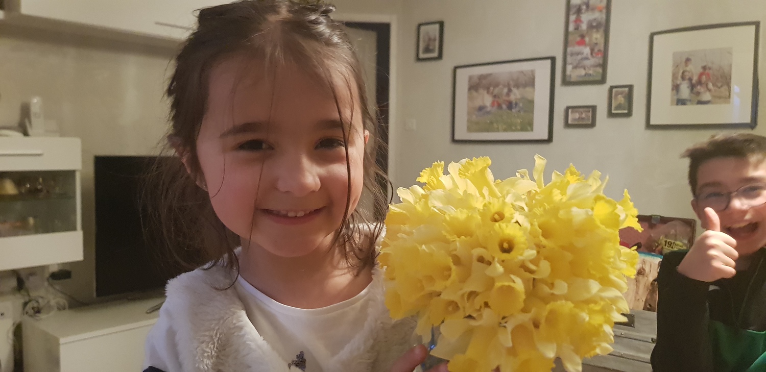 Kaonie cueille des jonquilles ou alors elle cuisine,