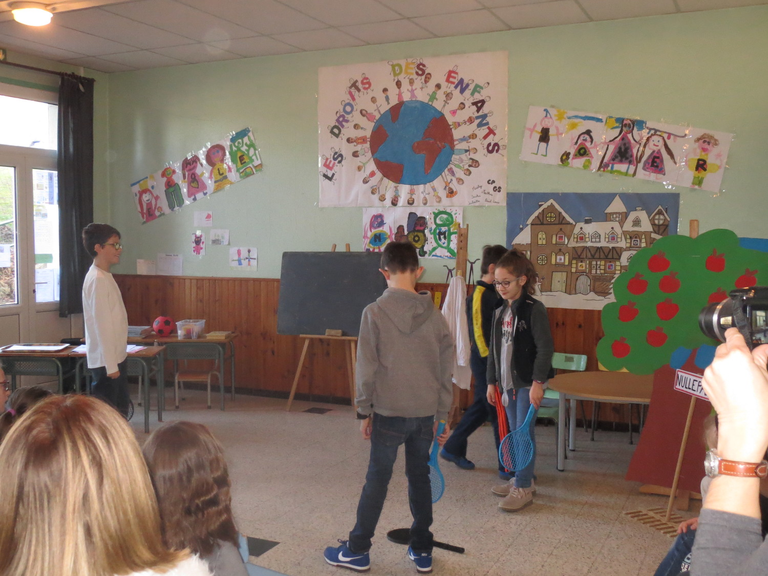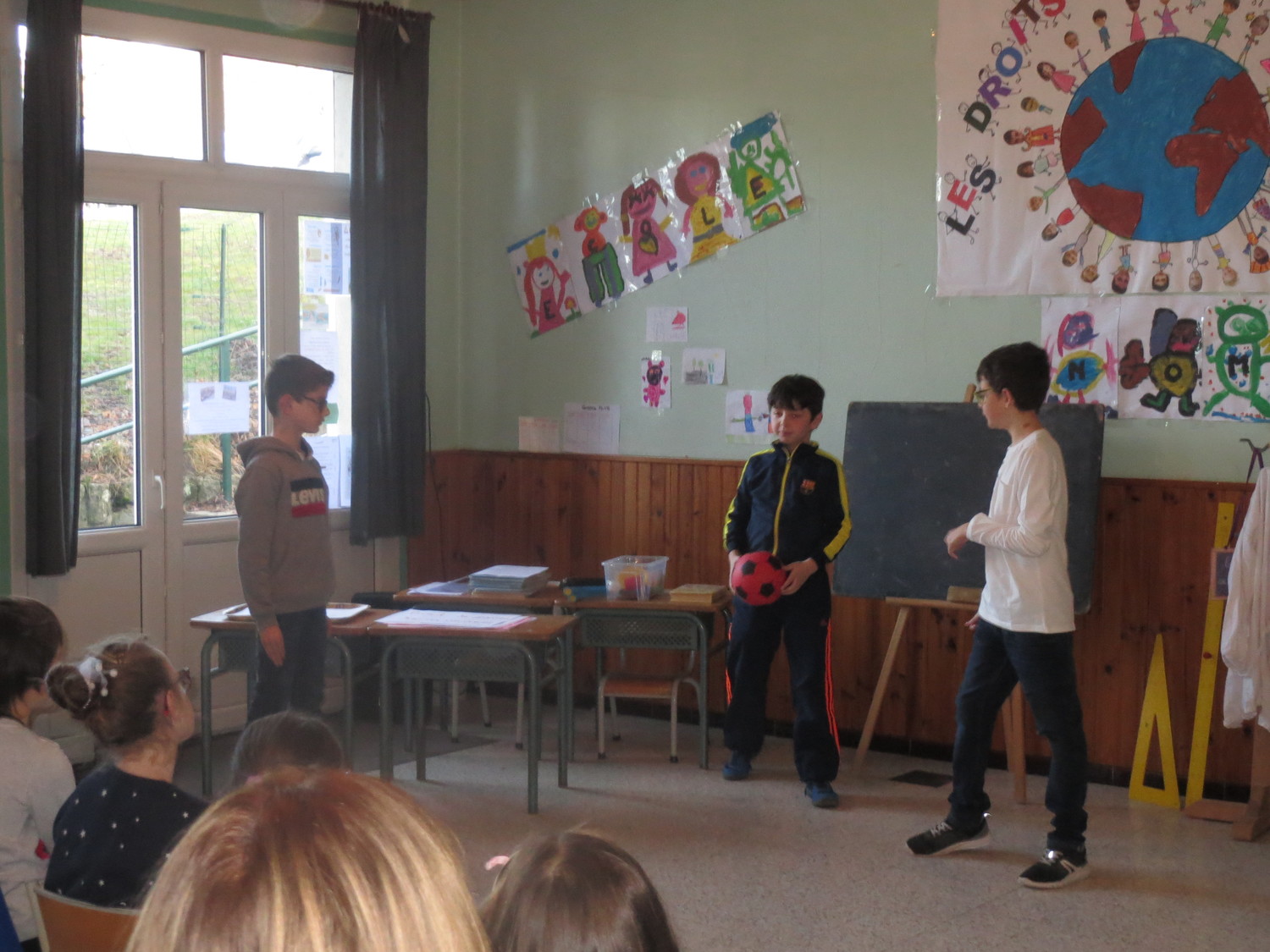 Les élèves ont préparé des saynètes pour mettre en évidence les règles de vie à l’école , les devoirs de l’écolier dans les jeux de cour, à  la cantine , à l’étude…