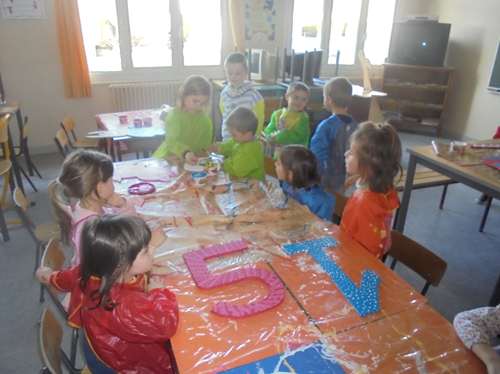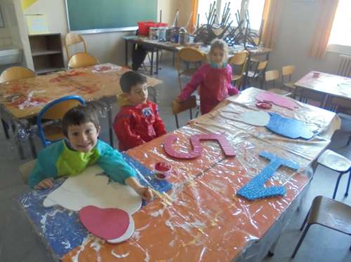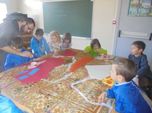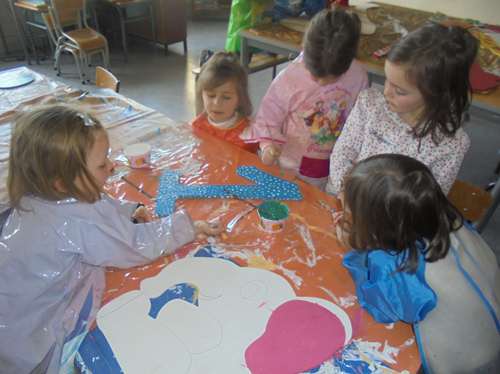 Les élèves de MS/GS se sont mis à l’art, avec l’aide d’un plasticien. En effet, à l’issue des 7 séances programmées une grande fresque viendra décorer l’école St Joseph. Le thème retenu est celui des Droits de l’Enfant.