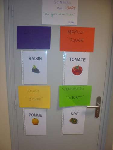Chaque jour , les élèves de MS/GS ont découvert une couleur associée à un goût:
